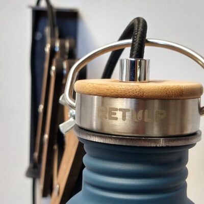 Deze wandlamp is ontstaan in samenwerking met het Nederlandse merk Retulp, die deze drinkflessen maakt. Om de plastic soep bij de bron aan te pakken en het aantal plastic flesjes terug te dringen wil Retulp ons inspireren om een aantrekkelijke herbruikbare drinkfles te gebruiken. Ook zijn de flessen vervaardigd van deels gerecycled roest vrij staal. Retulp levert aan veel bedrijven en winkels. Je kan er als bedrijf je eigen logo op laten graveren/bedrukken. Soms gaat hierbij wel eens wat mis of hebben sommige flessen beschadigingen en deze komen dan retour.