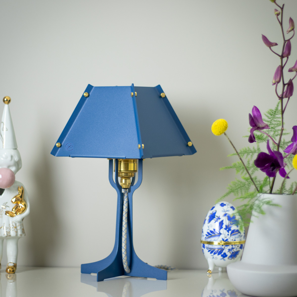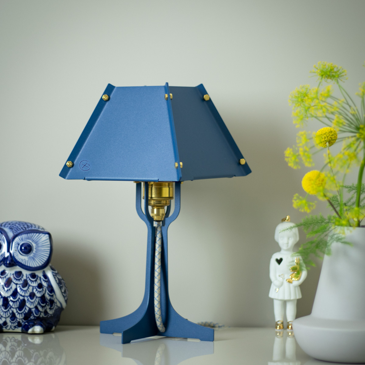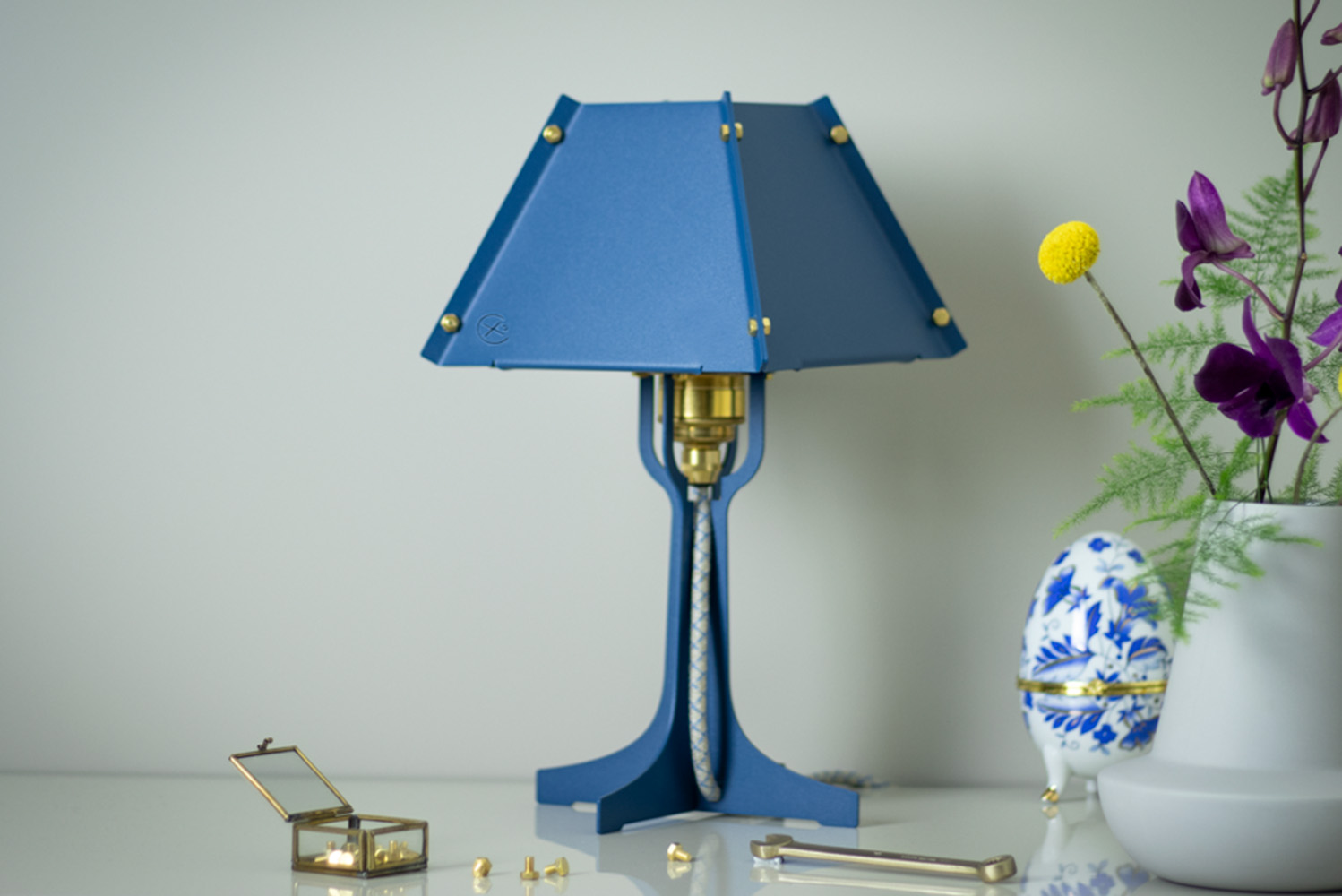 Wat veel producten verborgen houden, laten wij juist zien. Kijk maar naar de verschillende onderdelen waaruit deze lamp is opgebouwd; het snoer, de fitting, allemaal in beeld zodat je kunt zien hoe het gemaakt is. Lampie heeft een industriële look, maar de fijne kleuren en messing details zorgen voor de warmte in het ontwerp.